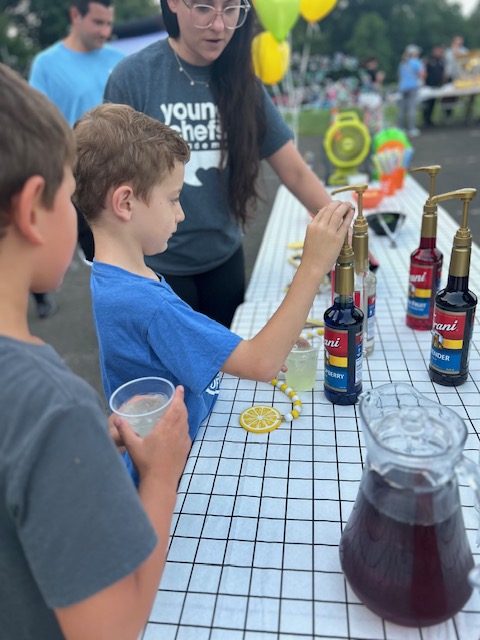 Led by YCA instructors Chef Sarah and Chef Denise, the lemonade bar was more than a fun refreshment stand, it was a miniature lesson in culinary creativity. Kids carefully measured ingredients, experimented with flavors, and learned how simple adjustments can transform a recipe. From fruity bursts of strawberry to classic citrus blends, each child’s concoction reflected the joy of hands-on cooking fun.